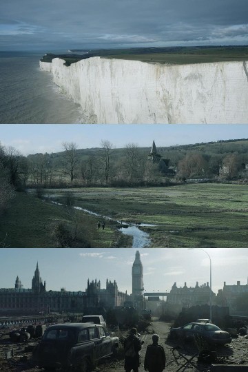 《达里尔·迪克森》这部衍生剧的一大特色,就是场景的丰富和大气,首集开场后,达里尔和卡萝尔先后走过了七姐妹岩、泰晤士河等地方,这是母剧《行尸走肉》所没有的福利。