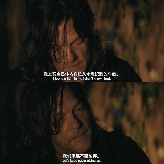 晚上换药时,达里尔也把他在上集的尾巴收了——自己在幻觉中见到了伊莎贝尔,找回了旺盛的求胜欲和斗志,他才不是什么只知逃命的“行尸走肉”。