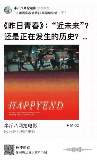 欢迎扫码收听播客节目,请注意:本期播客内容与本文不同,播客只谈《再见青春》,并侧重史实。其它平台播客更新链接请见文末。本文首发于公众号“半斤八两抡电影”。