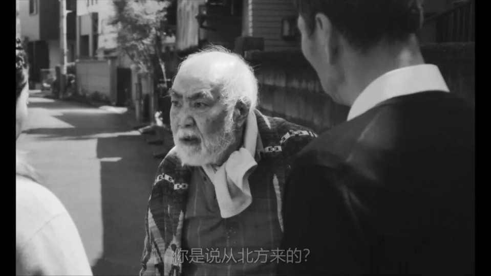 视点不明的空镜,作为全片第一个镜头,定下世界的基调,呼应着开场前的字幕——“试图将人们框进旧有框架的声音喧嚣不已,风化的庞大高楼比往常更加摇摇欲坠。日本那曾经划分人种的体系正在崩塌,似乎有什么巨大的变化将要发生。”向下飞速的甩镜头,视觉上无从判断物理距离,感官上就是“高到天际”,观众由此感受到人们都在“庞大高楼”之下生活。